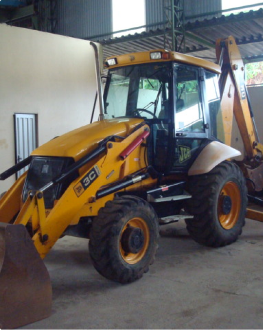 Máquina versátil que alia pá carregadeira e escavadeira em uma mesma máquina.